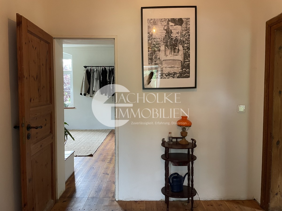 Die geräumige Einbauküche ist perfekt für kulinarische Erlebnisse und ermöglicht den Komfort von praktischen Arbeitsabläufen. Ursprüngliche Dielen und Fliesenböden unterstreichen den rustikalen Charakter des Hauses und verleihen ein besonderes Ambiente. Zudem sorgt ein Kamin für wohlige Wärme und gemütliche Stunden.