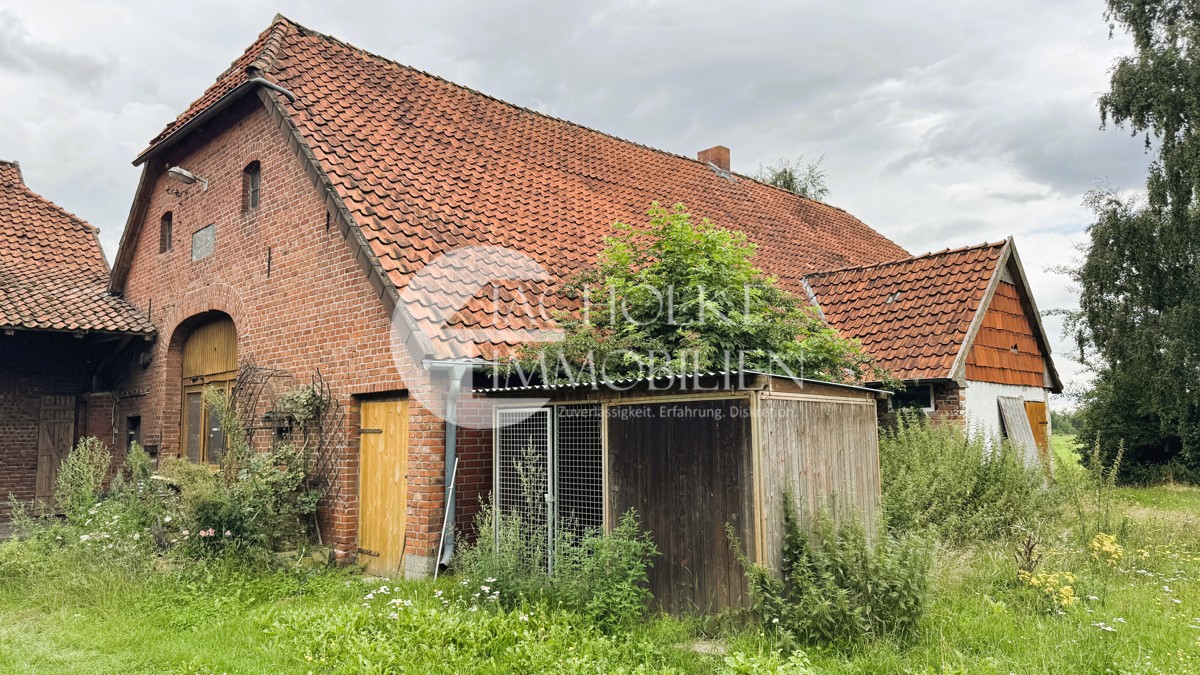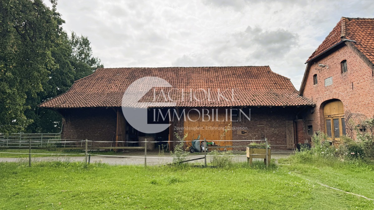 Das Ensemble umfasst ein klassisches Wohnhaus nebst im Jahr 2015 renovierter Einliegerwohnung (ca. 1927), eine historische Diele, einen ehemaligen Kuhstall (ca. 1955), eine Scheune und einen Schuppen – insgesamt stehen ca. 3.420 m² Nutzfläche zur Verfügung. Die Gebäude bieten vielfältige Nutzungsmöglichkeiten, etwa für Tierhaltung, Lagerung, Handwerk oder alternative Wohnkonzepte.
