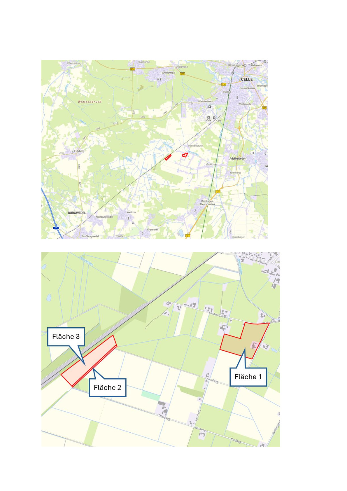 Die Hofstelle befindet sich in Adelheidsdorf, Ortsteil Großmoor, im niedersächsischen Landkreis Celle. Sie liegt verkehrsberuhigt im Außenbereich und ist über eine öffentliche Straße direkt erreichbar. Die zugehörigen landwirtschaftlichen Flächen sind bequem über befestigte Wege und Wirtschaftswege zugänglich.