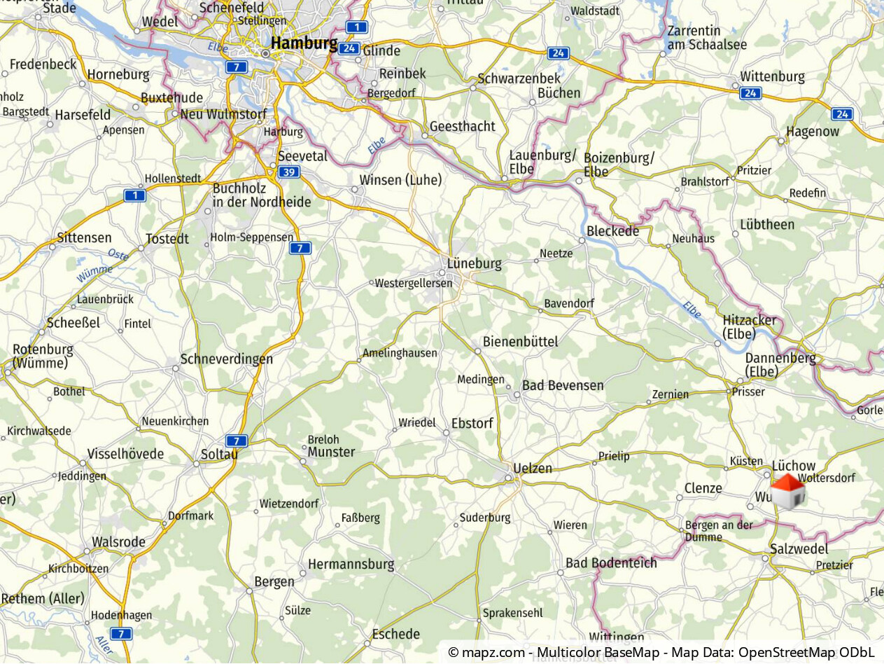 Die Immobilie liegt in einem kleinen, ruhigen Dorf der Gemeinde Lübbow im Landkreis Lüchow-Dannenberg. Die Umgebung ist geprägt von weiten Feldern, Wiesen und Wäldern und bietet ein naturnahes Wohnumfeld mit viel Ruhe und Erholung. Die Grundversorgung mit Einkaufsmöglichkeiten, Schulen und medizinischer Betreuung ist im nahegelegenen Lüchow gegeben, das in wenigen Minuten erreichbar ist. Durch die landschaftlich reizvolle Lage eignet sich das Haus ideal für Menschen, die das Leben im Grünen schätzen und dennoch nicht auf eine gute Anbindung an die Infrastruktur verzichten möchten.